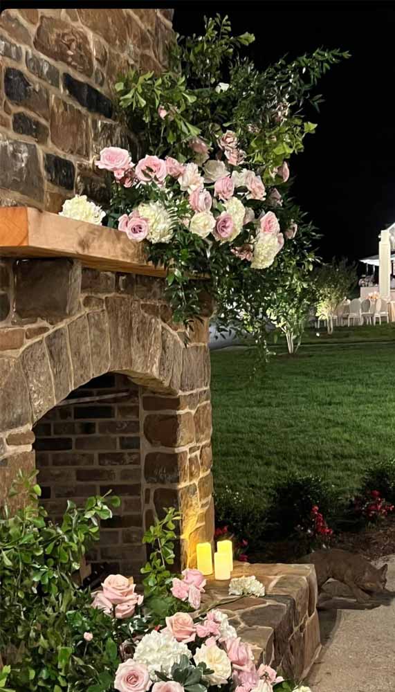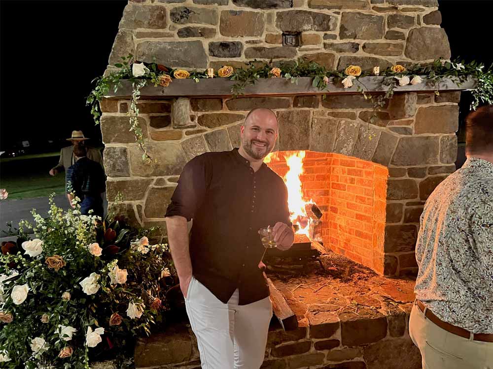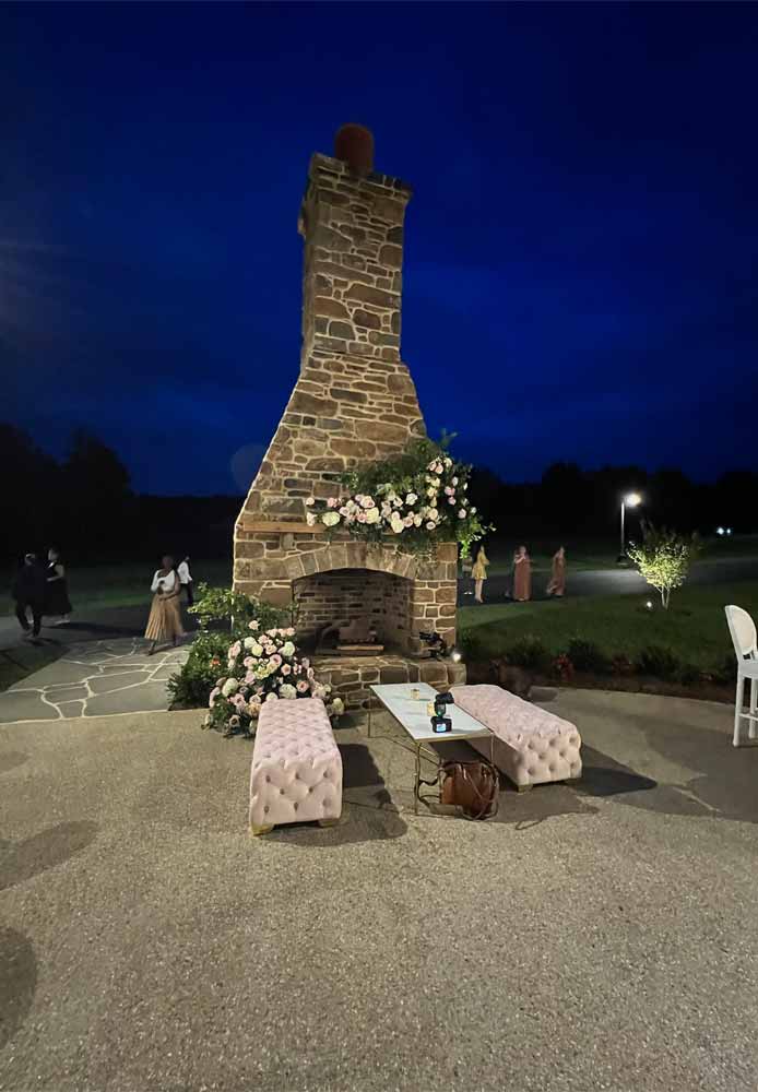 The Barns at Crest Hill Fireplace Patio with decorated cake