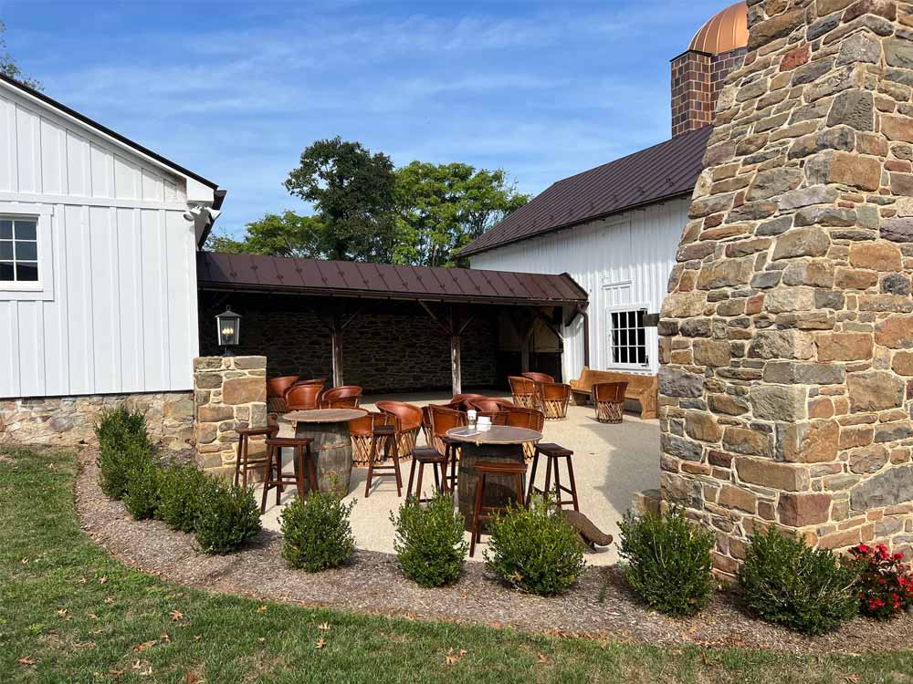 The Barns at Crest Hill Icehouse Patio with bar cart